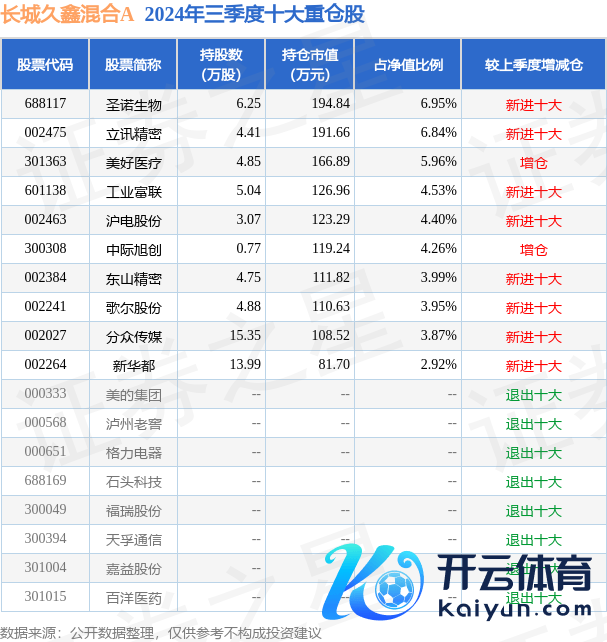 长城久鑫羼杂A为羼杂型-生动基金,凭证最新一期基金季报表示,该基金金钱树立:股票占净值比89.63%,无债券类金钱,现款占净值比14.21%。基金十大重仓股如下: