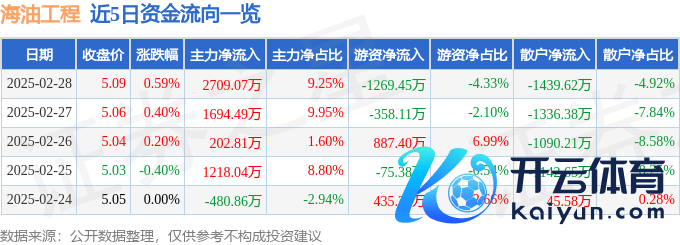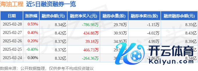 欧洲杯体育近5日资金流向一览见下表:海油工程融资融券信息泄漏-开云(中国)Kaiyun·体育官方网站 登录入口